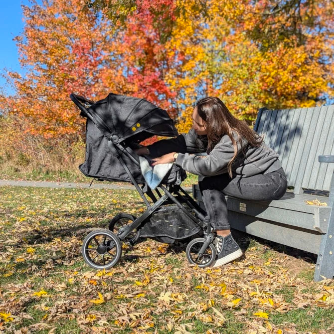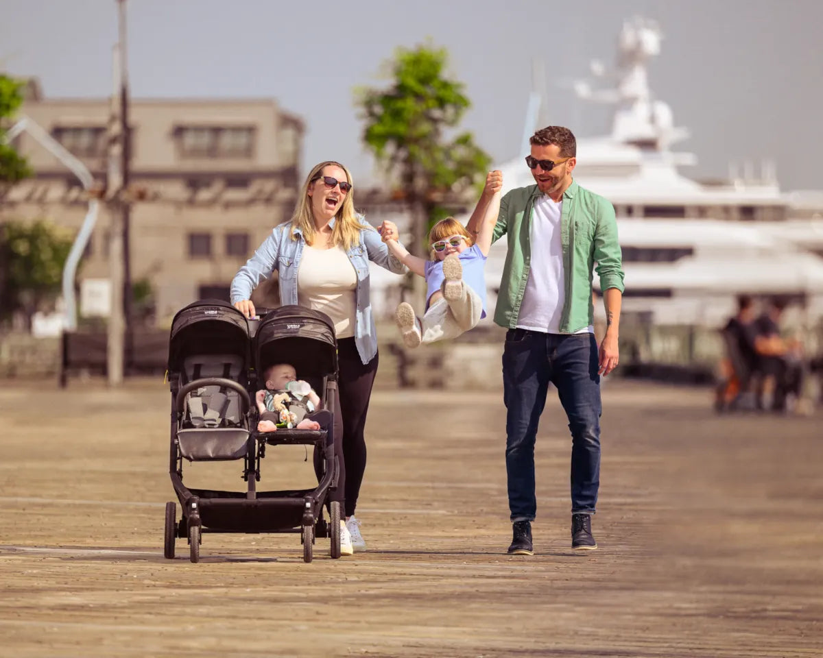 All BabyCruiser Double Strollers come with the stroller frame, seats, wheels, canopy, child “bumper” bars, basket, and a free raincover!